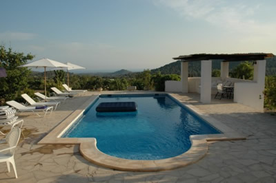 Villa Can Monte Dalt, es una tradicional finca, con vistas al mar, y cerca de las playas de Ibiza. Can Monte Dalt, es una casa rural típica ibicenca, una mansión ancestral de 330 años de edad, que ha mantenido todo el calor y ha conservado sus orígenes. Situado en la carretera Ibiza-San José, a unos 10 km. de la ciudad de Ibiza y a 15 minutos en coche a cualquiera de las bahías más bonitas de Ibiza y sus playas. La finca dispone de un bello jardín, donde usted puede sentarse y admirar las vistas de un paisaje espectacular y el mar. Disfrute de un desayuno bajo la sombra o simplemente relájese en la piscina. En un lugar como este no es fácil de olvidar, déjese llevar por el ambiente tranquilo y maravilloso.